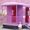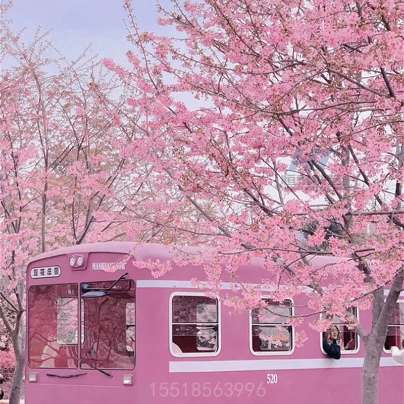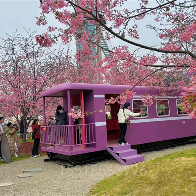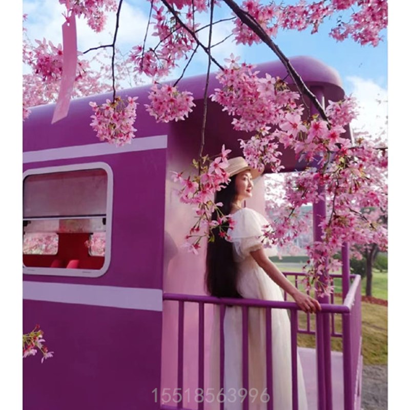有轨电车模型粉色列车铁艺商场景区雕塑园林景观美陈模型装饰摆件