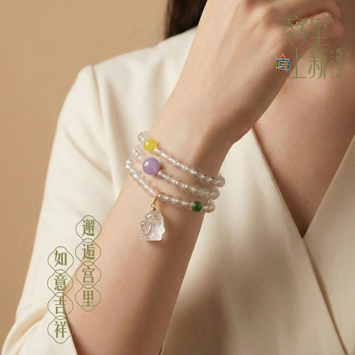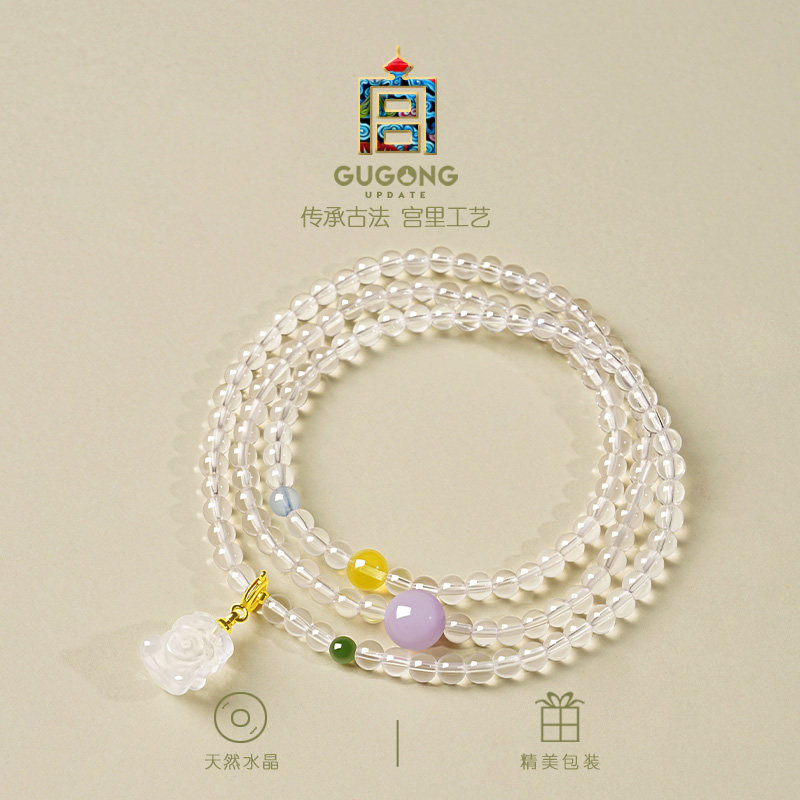 宫里上新白水晶手串女士天然白色水晶手链女款多圈串珠生日礼物