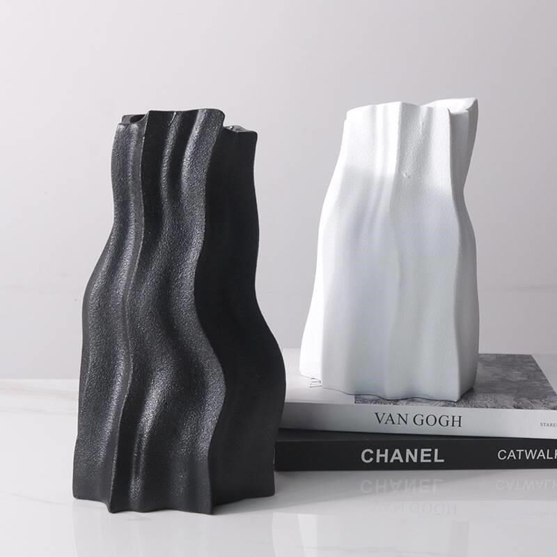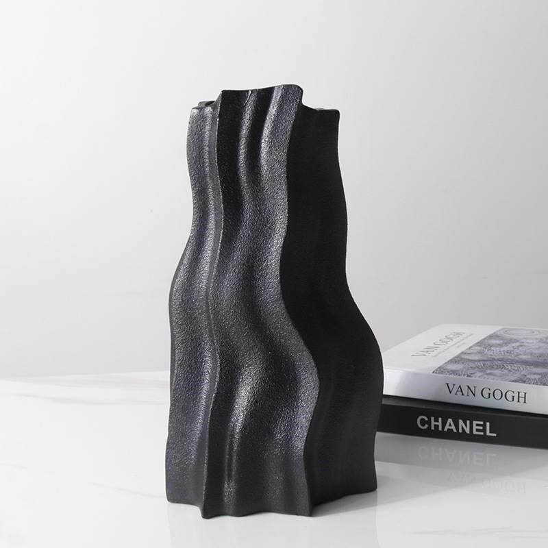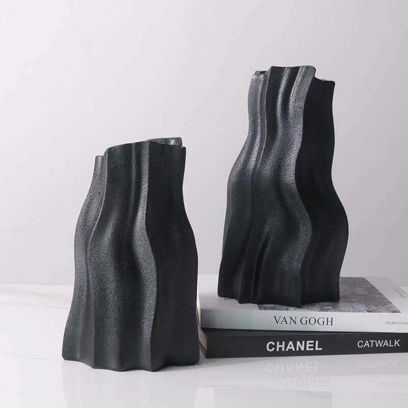 简约抽象线条黑色寒川花u器餐厅客厅玄关台面样板间现代花瓶