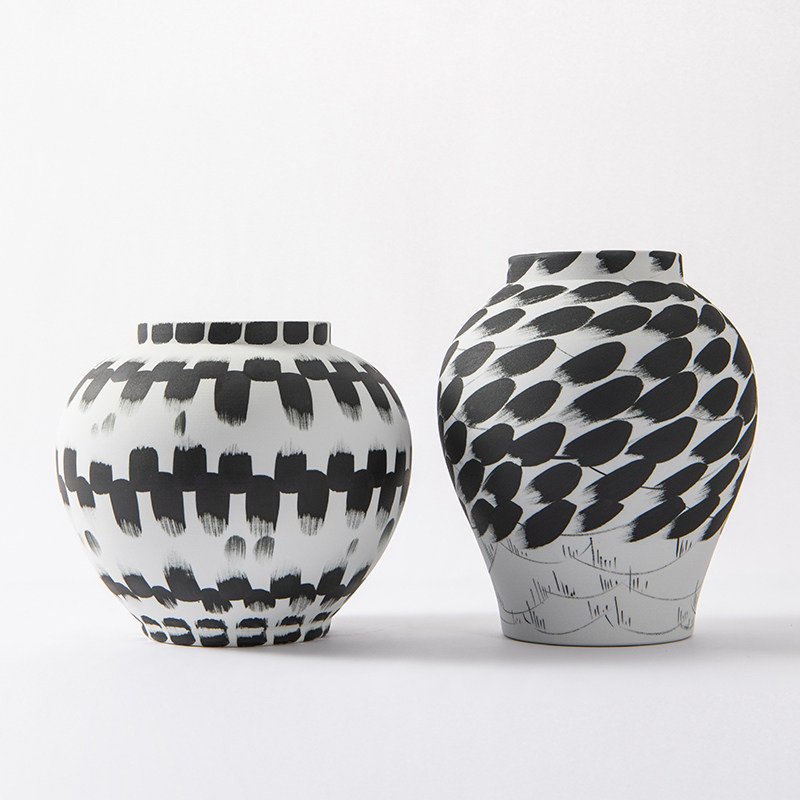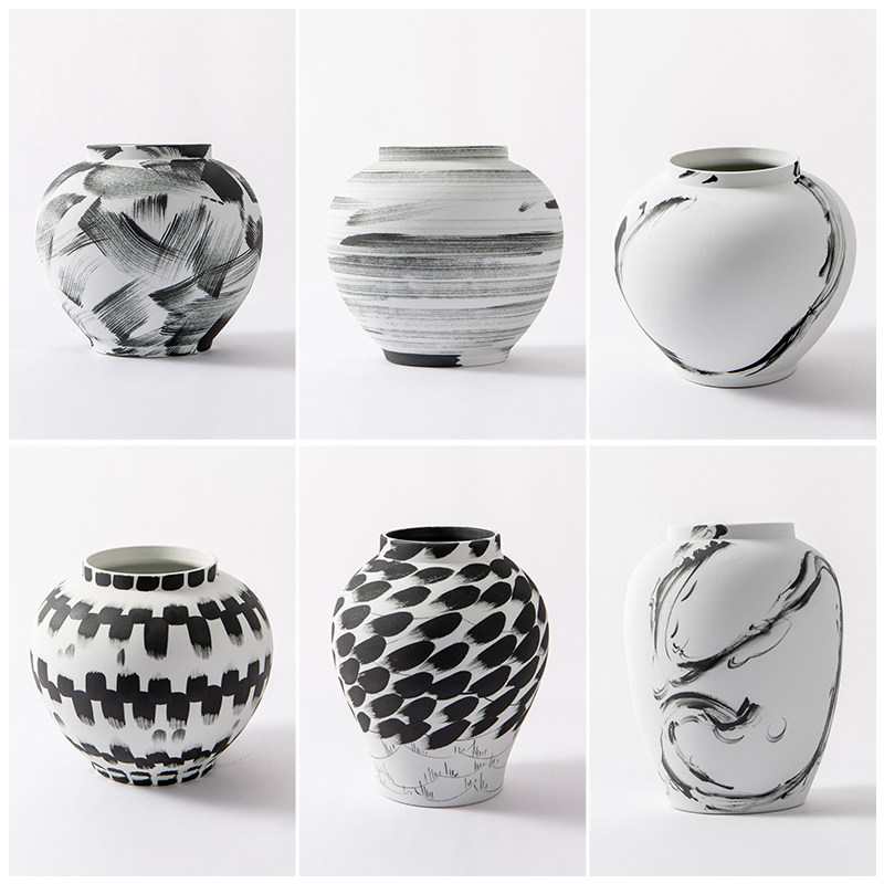 新中式水墨陶瓷大花m瓶日式磨砂大口径罐子玄关侘寂风书房桌面摆