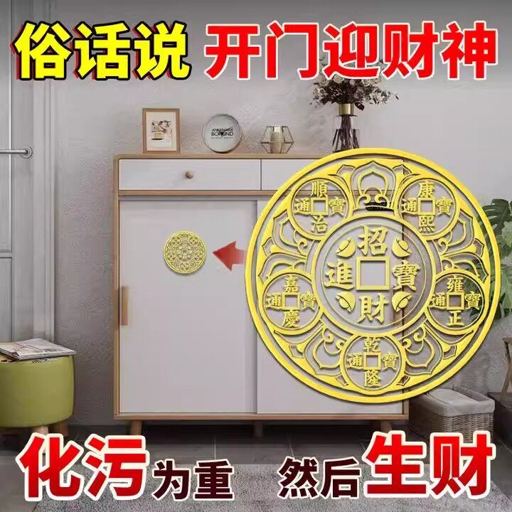 开门见鞋柜五帝钱解决入户门化污迎财净秽天官赐福金属贴大门对门