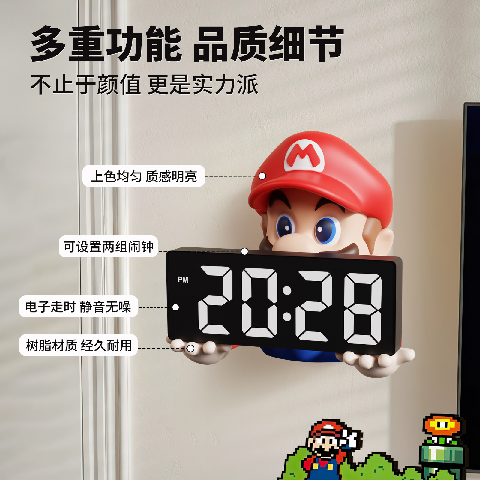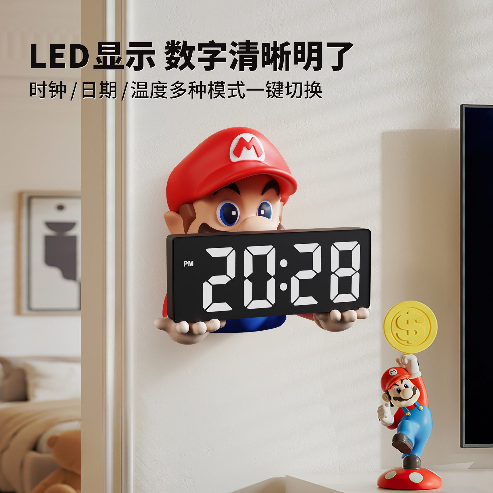 马里奥钟表挂钟客厅2025新款壁挂电子时钟玄关墙面闹钟装饰品摆件