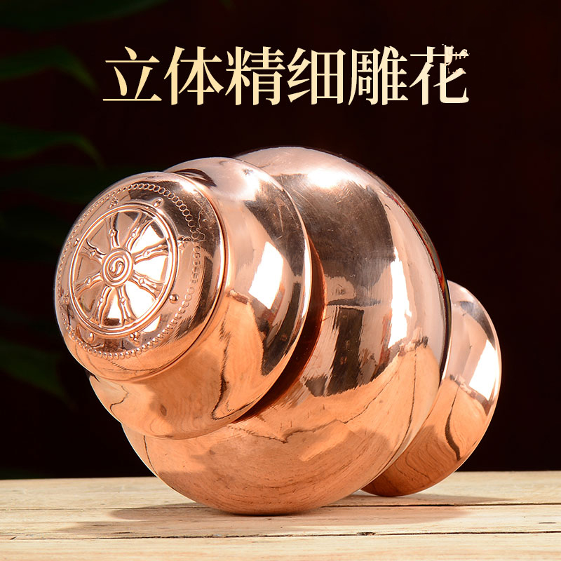 红铜光面雕花八吉祥宝瓶居家桌面装赞摩尼宝财神宝瓶摆件