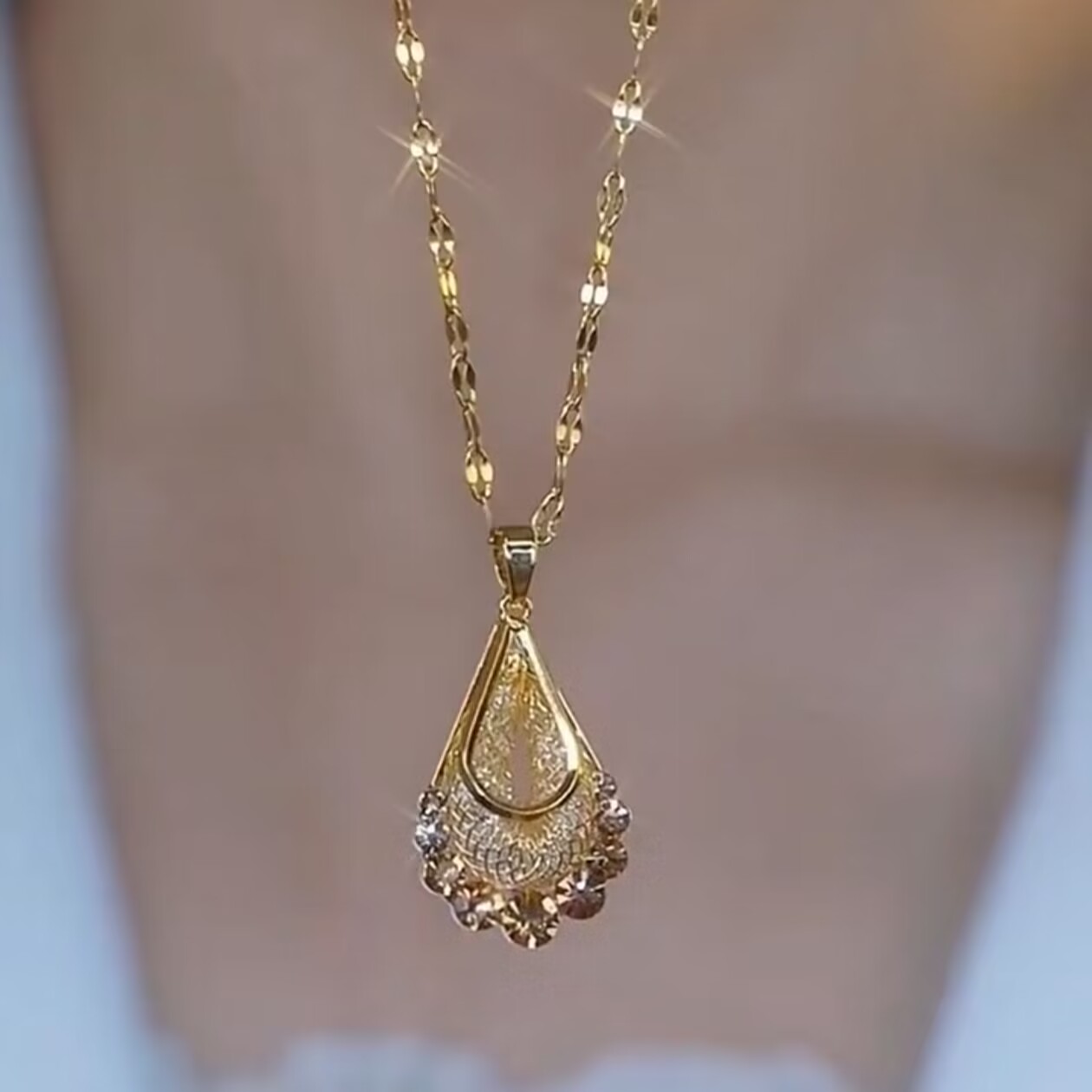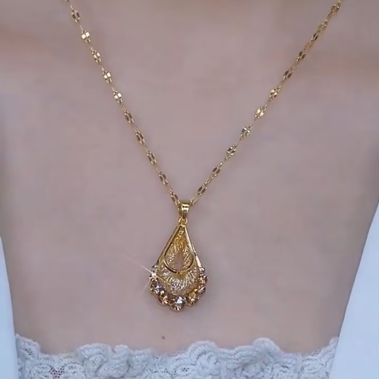 金丝网状咖色水晶水滴项链女网红爆款轻奢气质高级感时尚大气项链