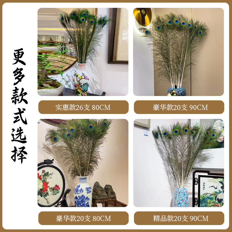 天然大眼孔雀毛真羽毛摆件工艺品玄关家居招财新中式电视柜