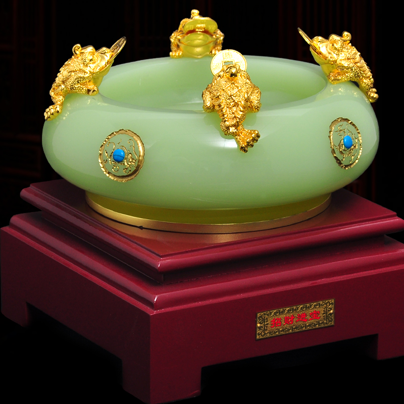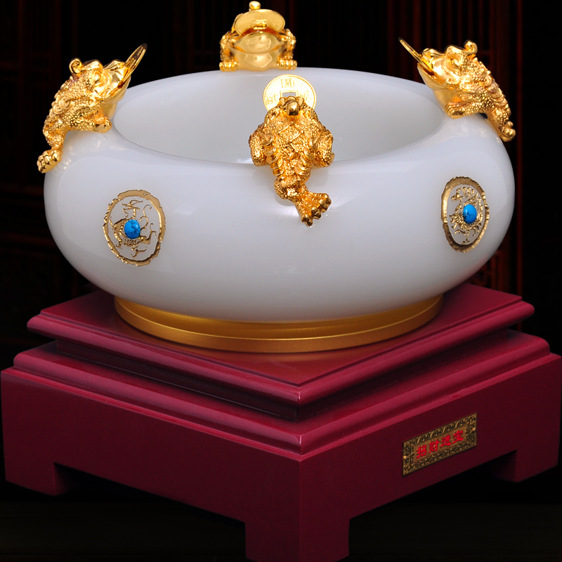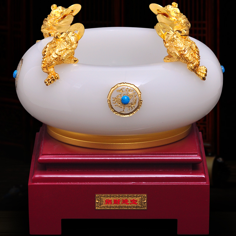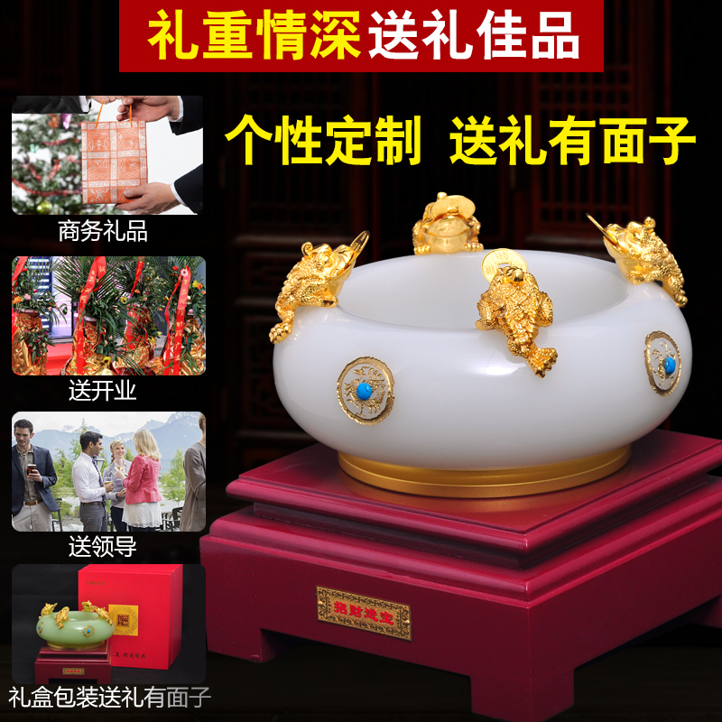 白玉聚宝盆金蝉招财摆件琉璃玉工艺品客厅酒柜装饰品高档商务礼品
