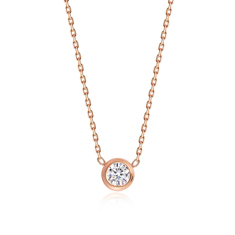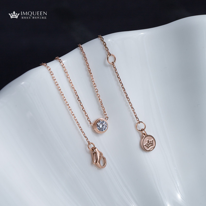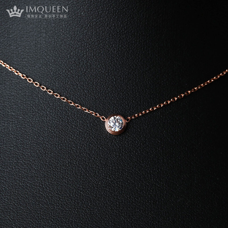 18k彩金2022新款钻石项链女 圆钻锁骨链玫瑰金简约森系冷淡风吊坠