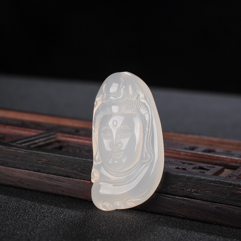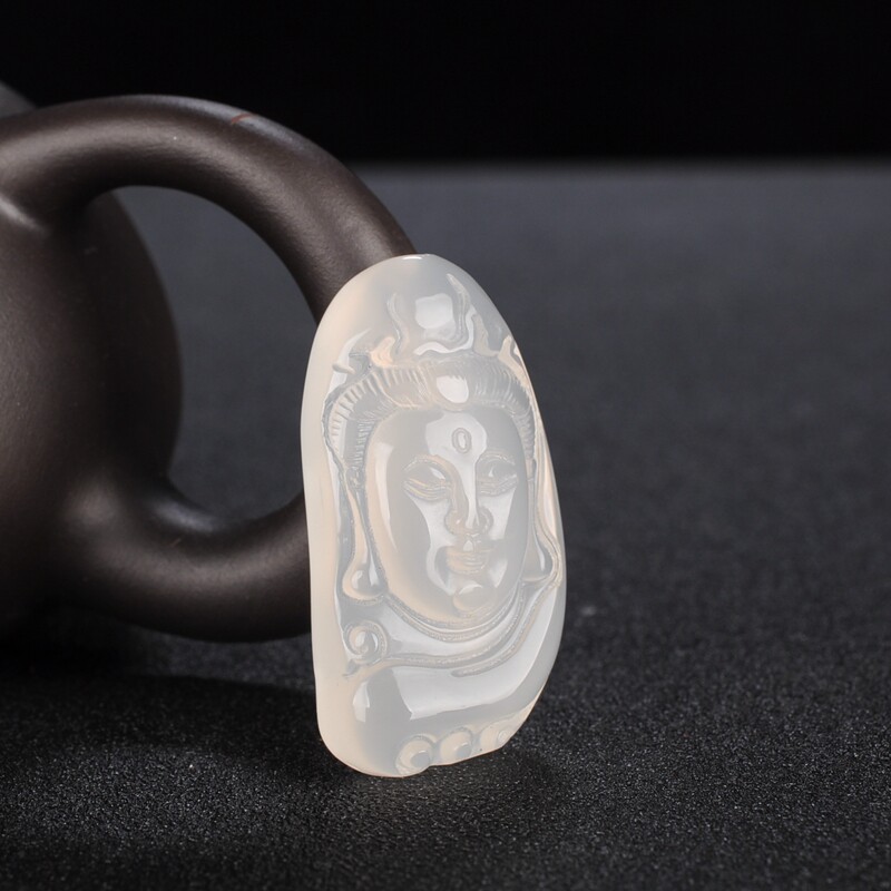 新品冰种玉髓观音吊坠单面雕刻观音头玉佩像玛瑙挂件男款玉髓项链