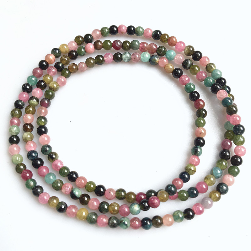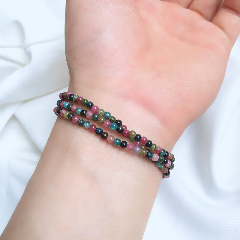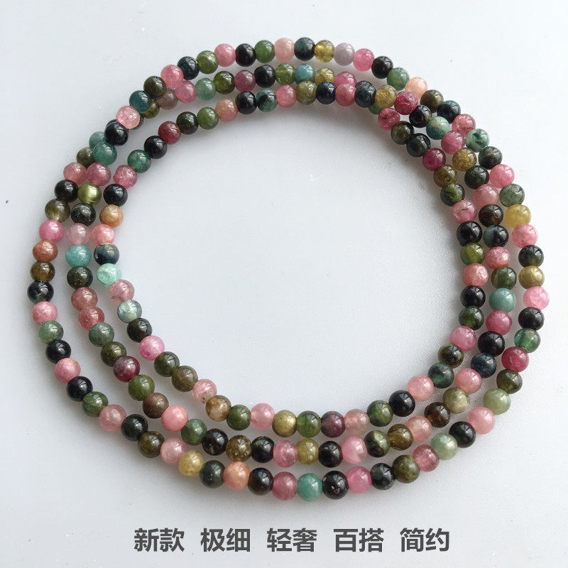 天然碧玺手链多圈女老款彩虹碧玺手串三圈简约迷你小珠复古名族风