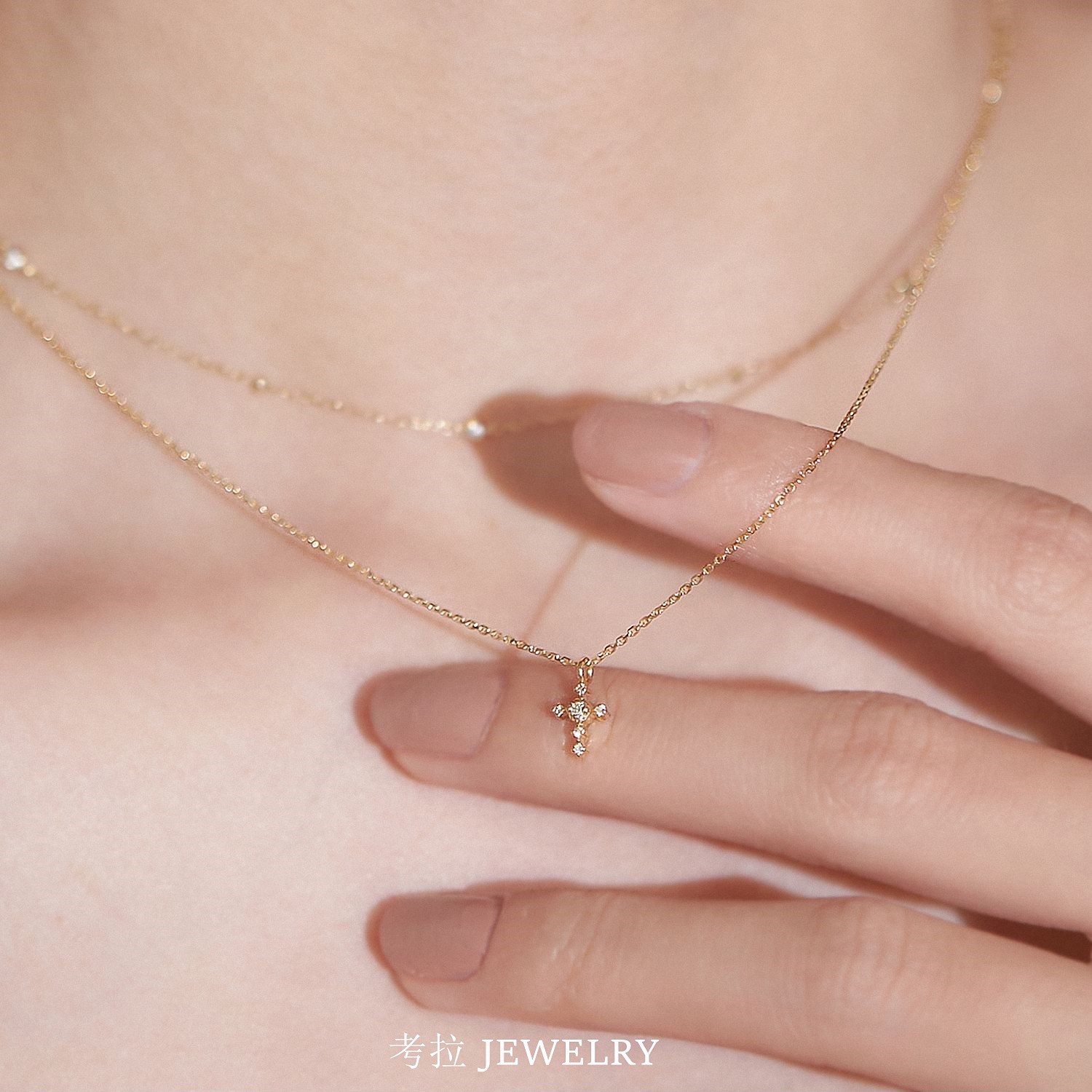 日本ΑΗKAИ十字架项链女挚爱18.K星光镶钻锁骨链纯银气质高级潮