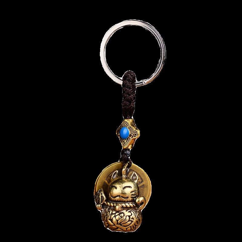速发纯黄猫招财钱五铜扣挂件随身汽车皮包挎包装饰小件