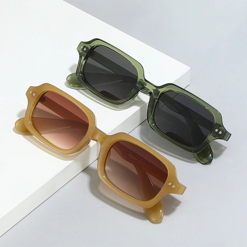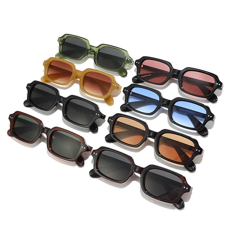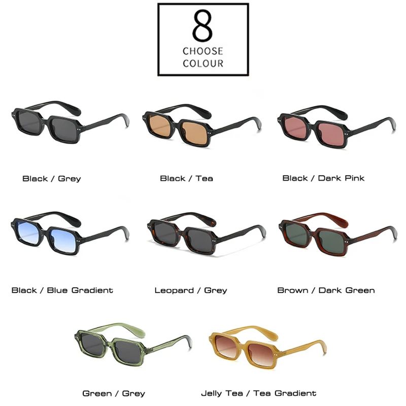 Fashion Small Rectangle Men Sunglasses Retro Rivets Blue Gre