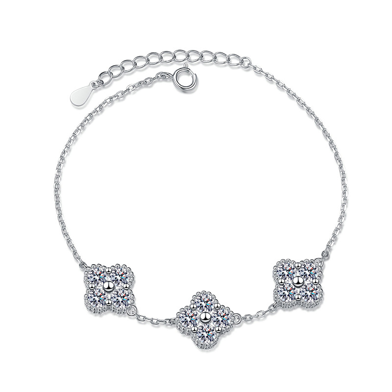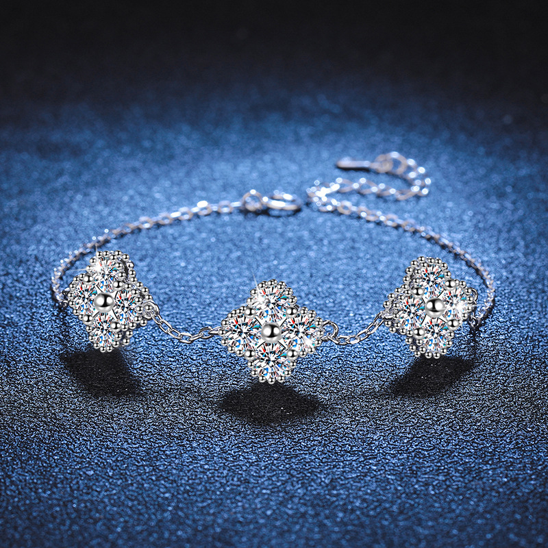 情人节礼物满钻四叶草高级感手链s925纯银莫桑石手饰莫桑钻手链