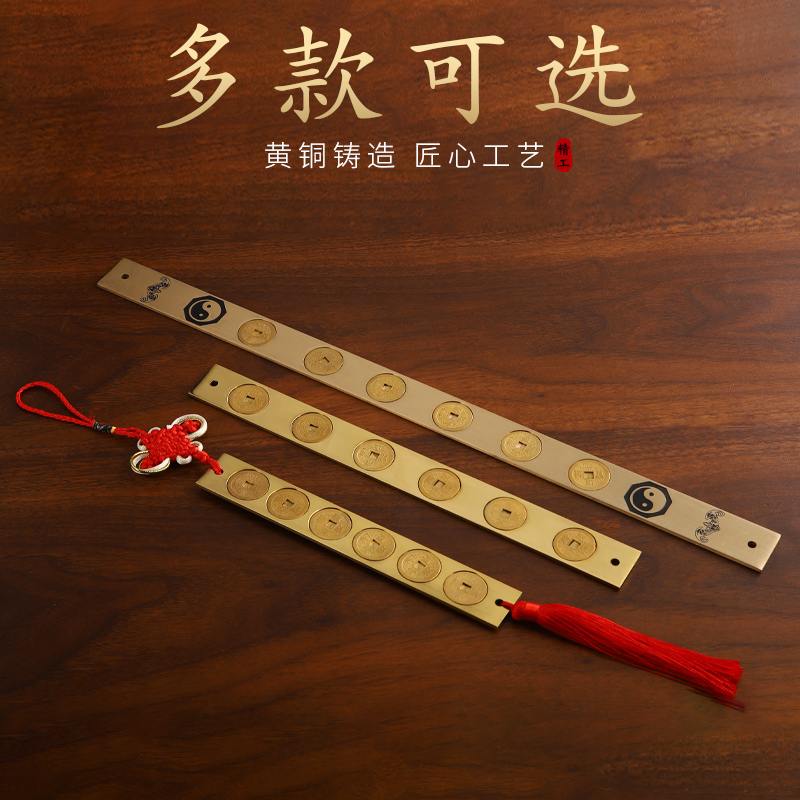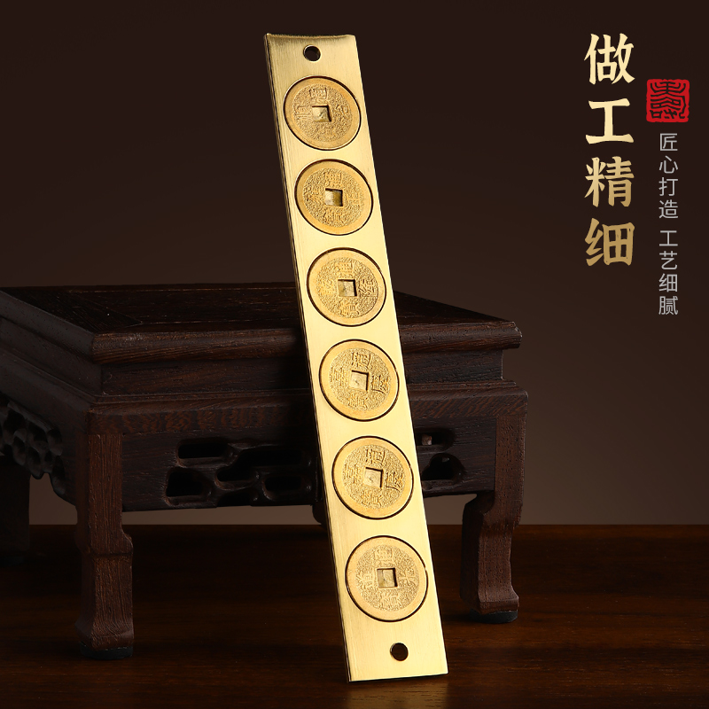 铜实心六帝尺铜钱尺六帝纯黄铜尺五帝尺鲁班尺钱葫芦挂饰家居挂件