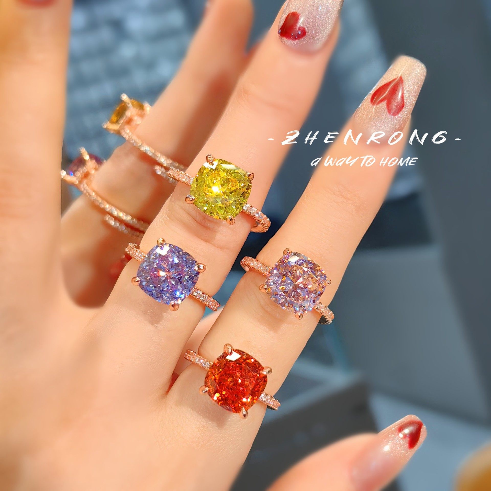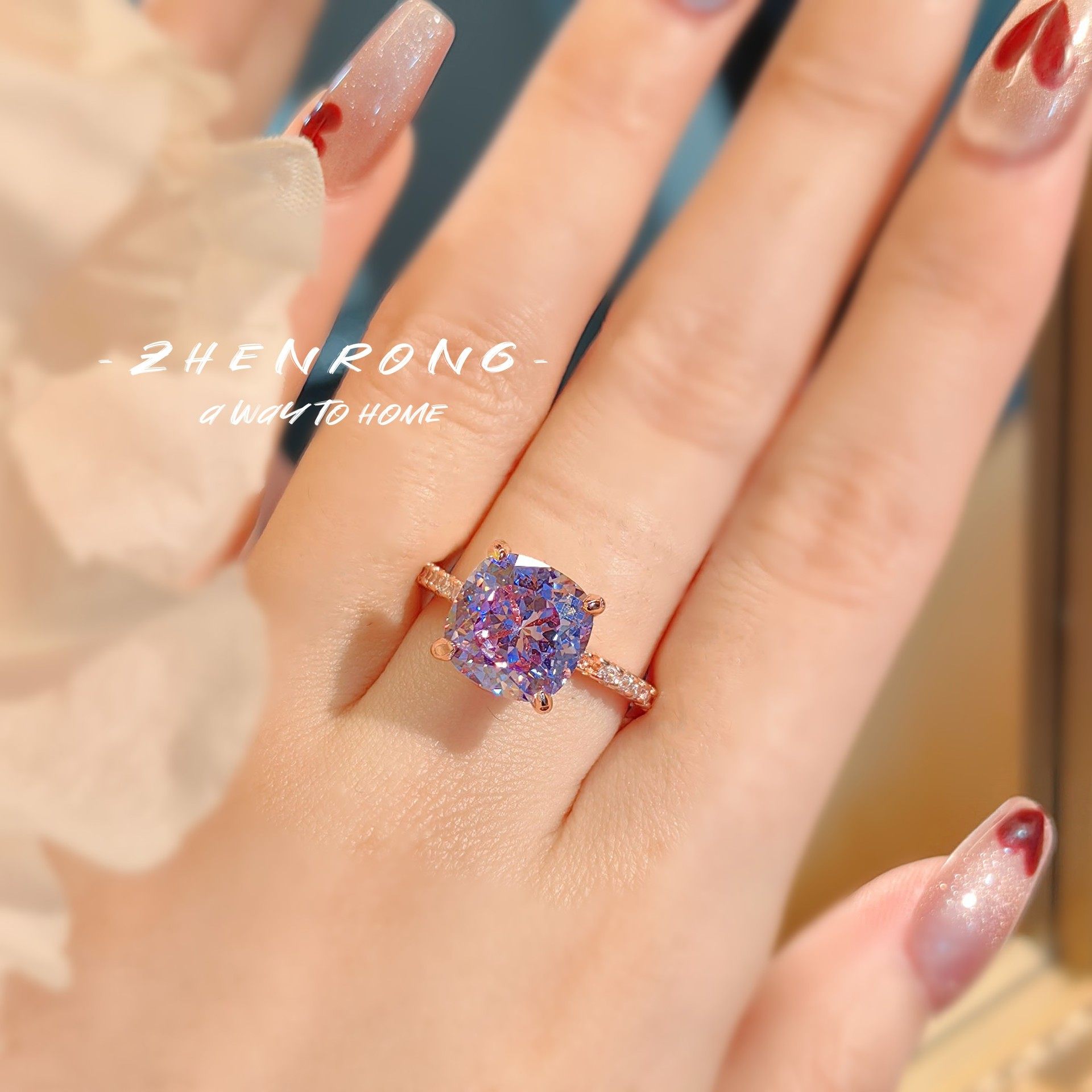 有米【冰花切美德拉小方糖戒指】高级感奢华焦糖色紫色玫瑰金钻戒