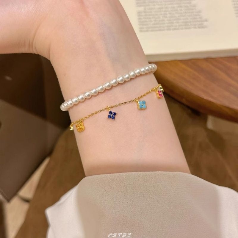 中古复古气质四叶草锆石耳钉彩色滴釉高级感耳环夏天甜美耳饰项链