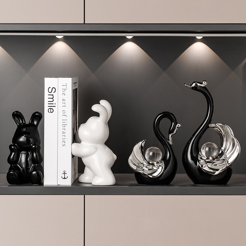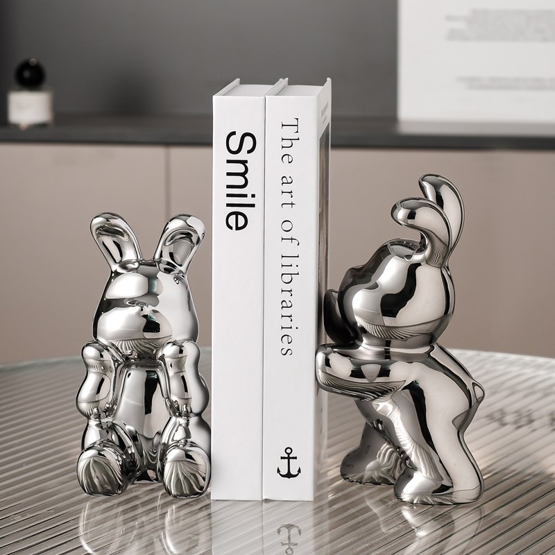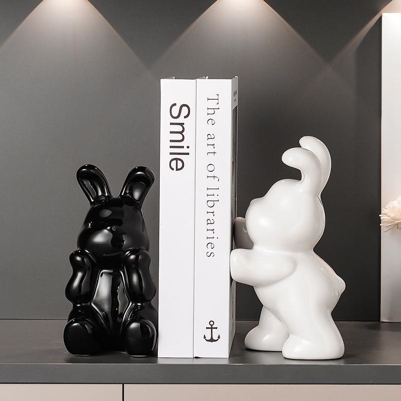 创意兔子书档摆件玄关客厅书房书柜书立桌面电视柜家装家居装饰品