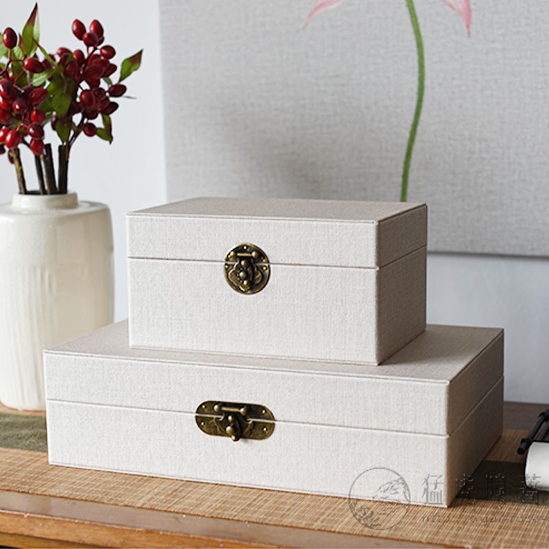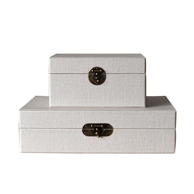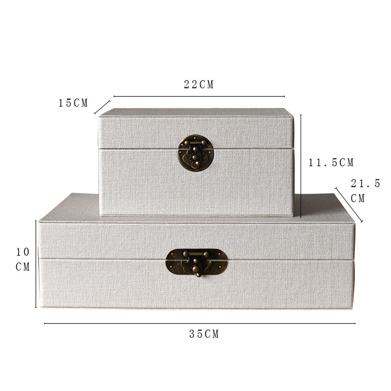新中式样板房皮革米白色首饰盒摆件衣帽间卧室收纳盒简约装饰品盒