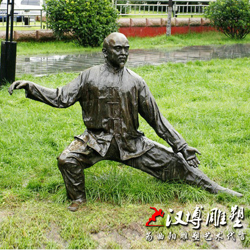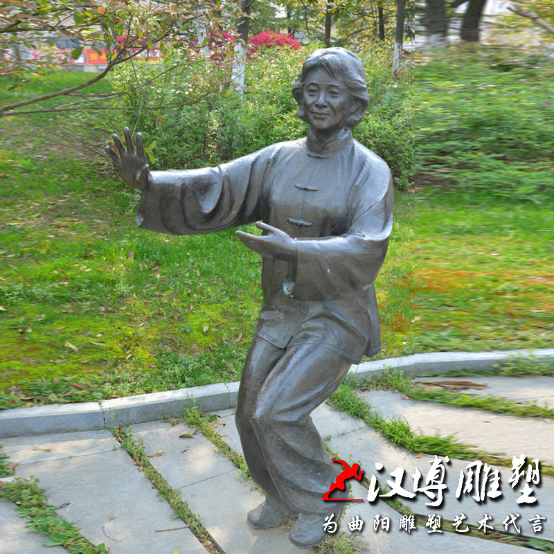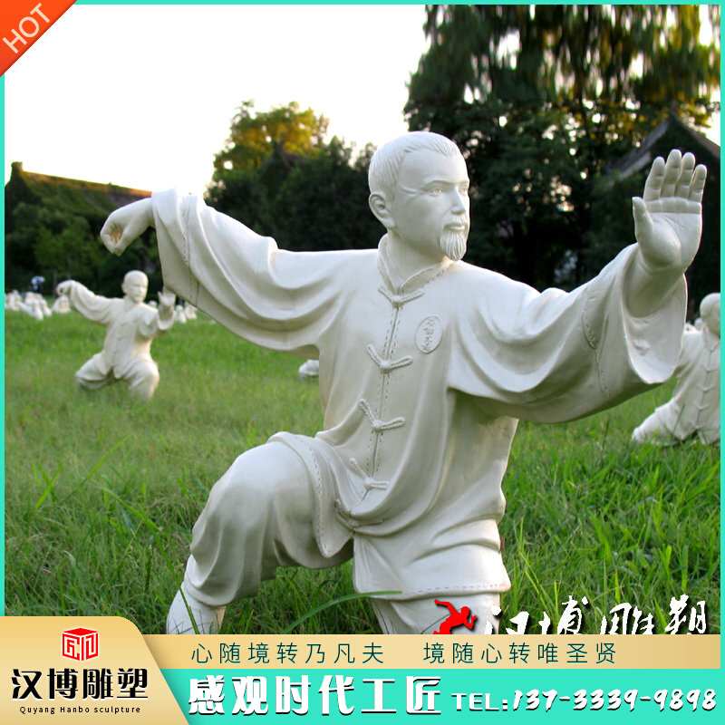 玻璃钢白色效果仿石漆人物雕塑打太极主题雕塑老头公园锻炼雕塑