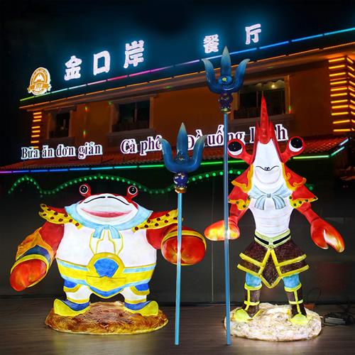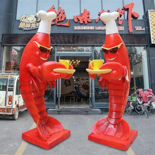 迎宾龙虾发光摆件火锅餐厅海鲜店落地雕塑门口卡通龙虾玻璃钢模型