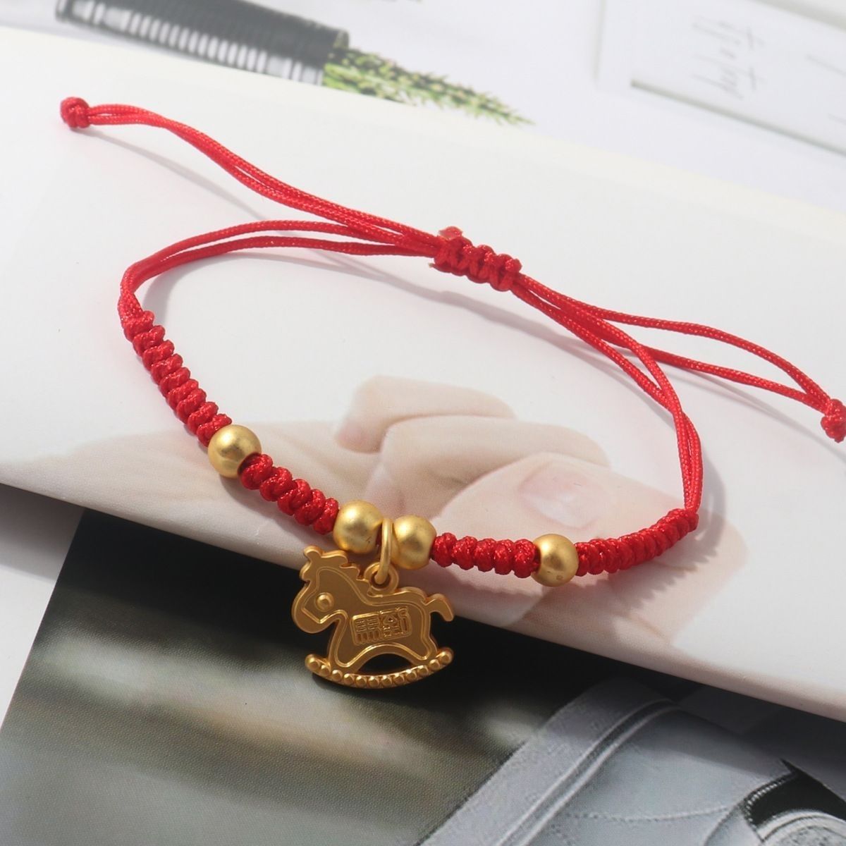 爆款2026马年本命年福马红绳编织手链马上有钱新年手绳过年礼物