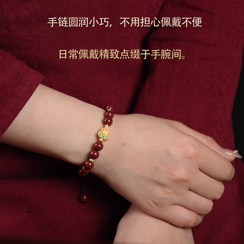原创天然原矿紫金砂葫芦保平安圆珠手串暗红色本命年朱砂手链马年