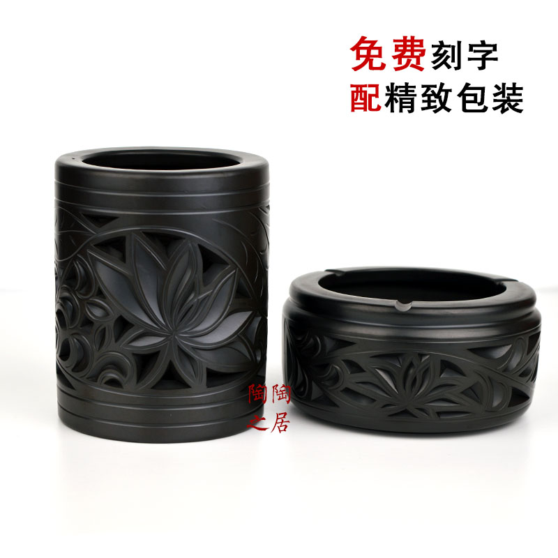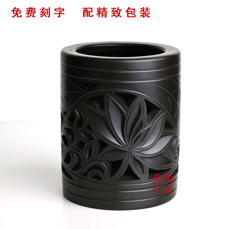黑陶装礼盒镂空笔筒陶瓷桌面摆件商务礼品定制创意摆设领导