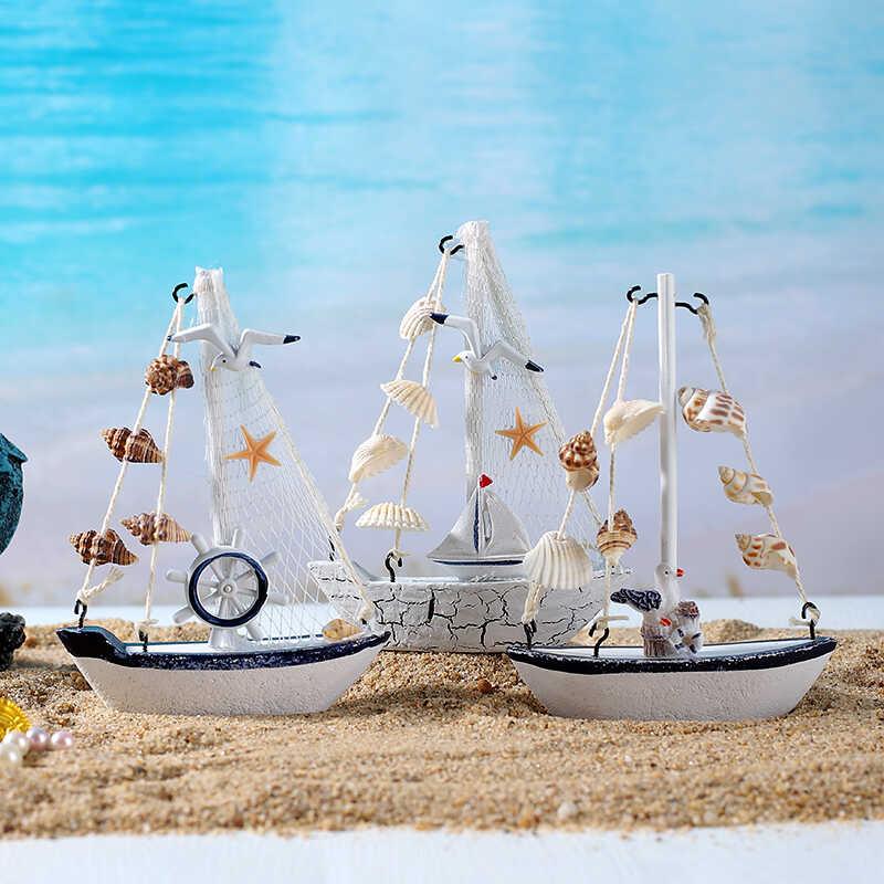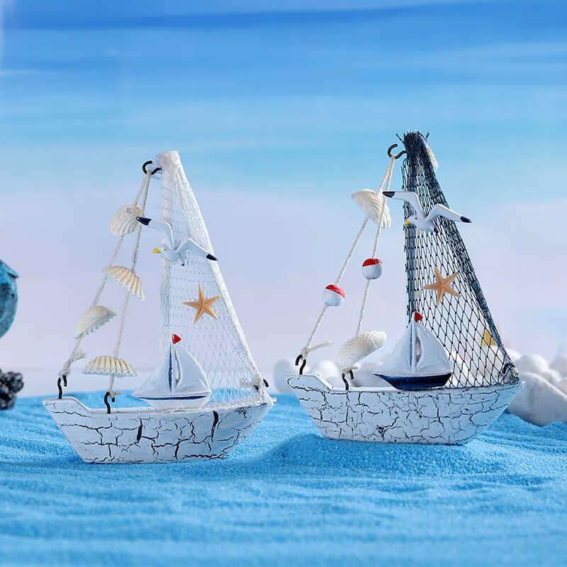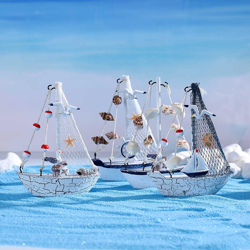 木质地中海风格帆船装饰摆件家居客厅工艺船小船模型摆设拍摄道具