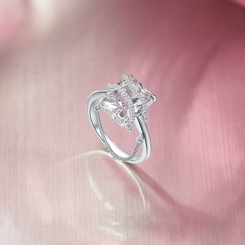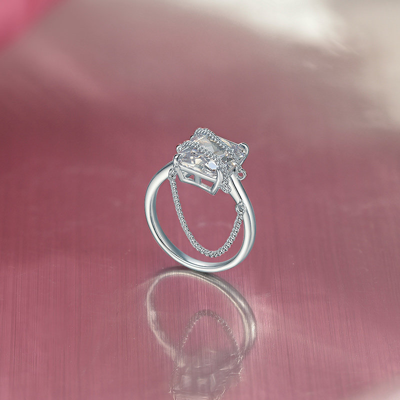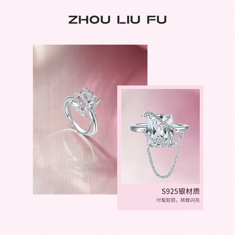 周六福S925银几何方糖戒指女指环手饰送女友节日礼物