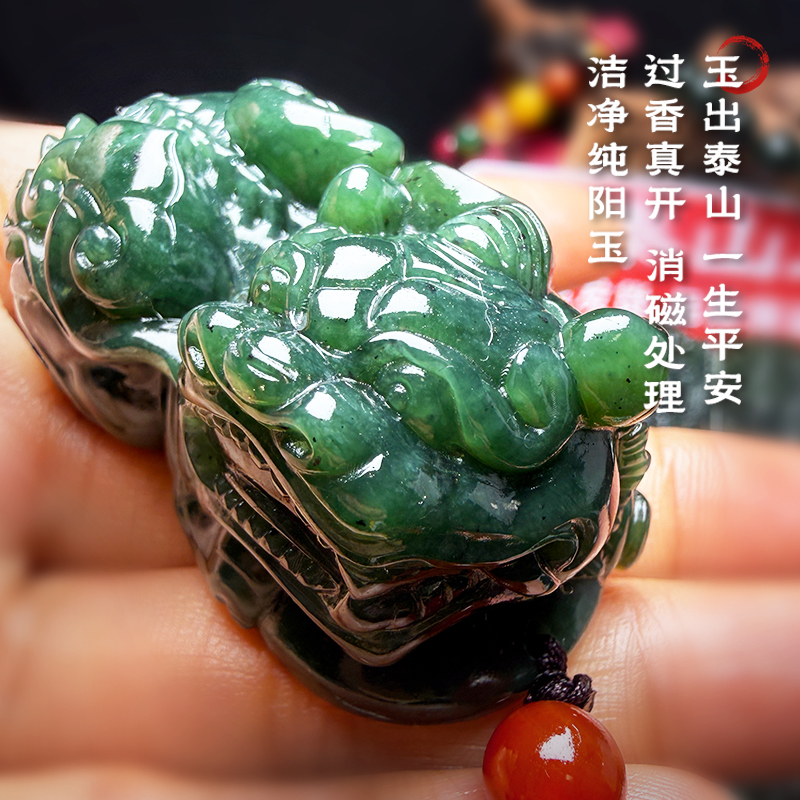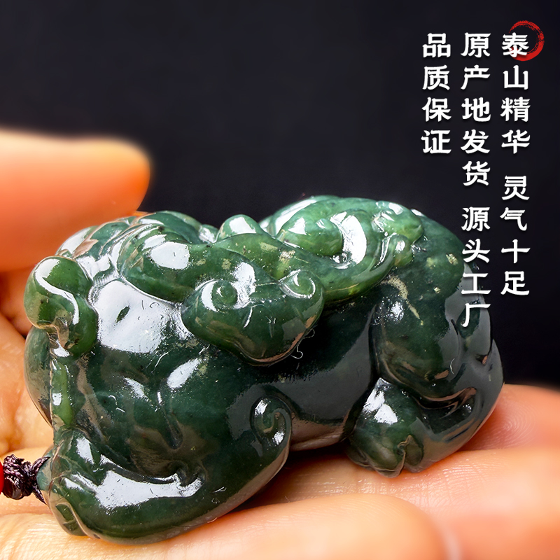 【泰山流程】泰山玉碧玉墨玉貔貅手把件摆件手工雕刻天然保真