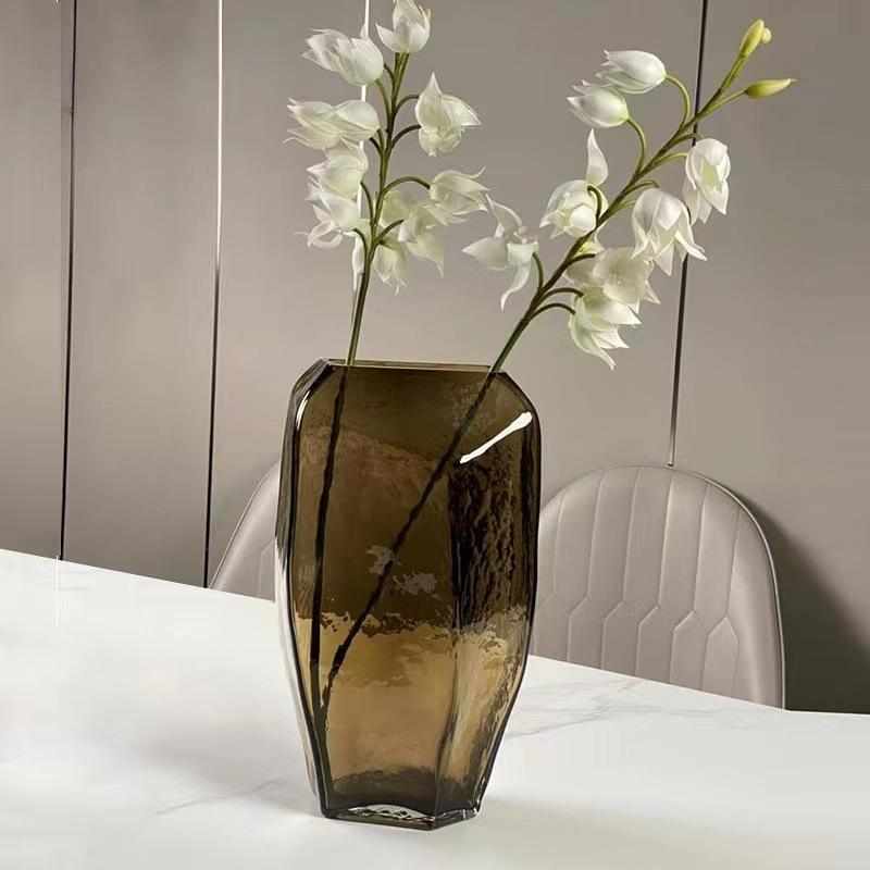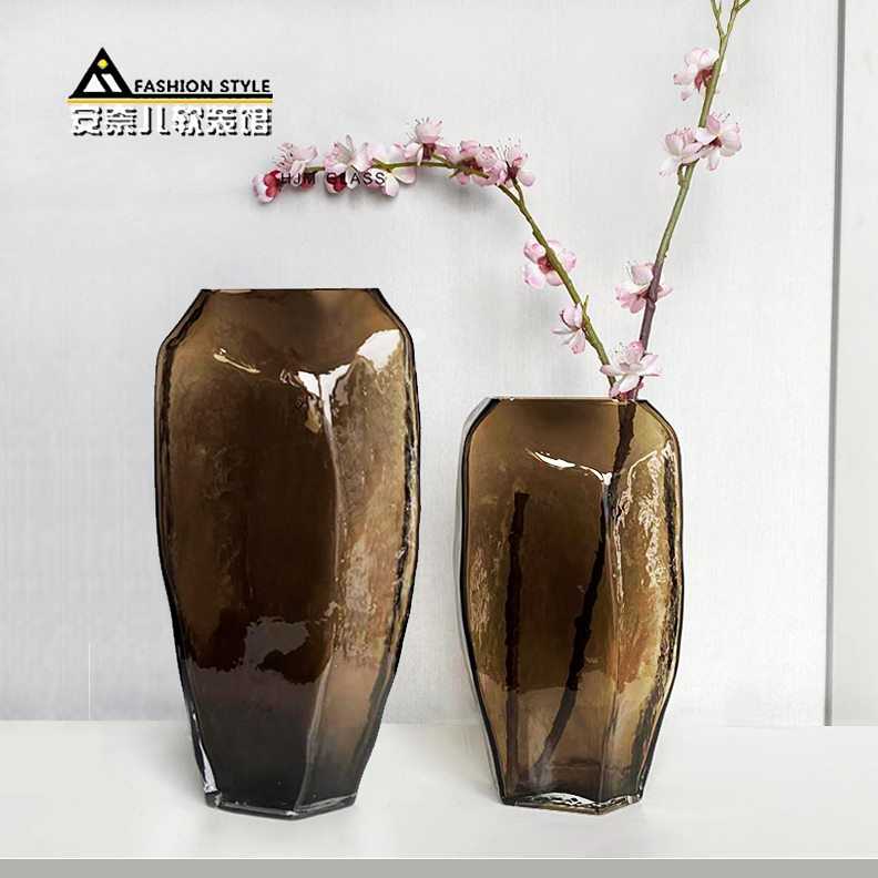 冰花瓶几何水培玻璃纹软客厅装花样板间 色摆件家居大号器创意咖
