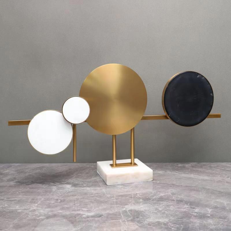 现代创意金属大理石底座圆形摆件客厅家居K办公室书柜轻奢软装饰