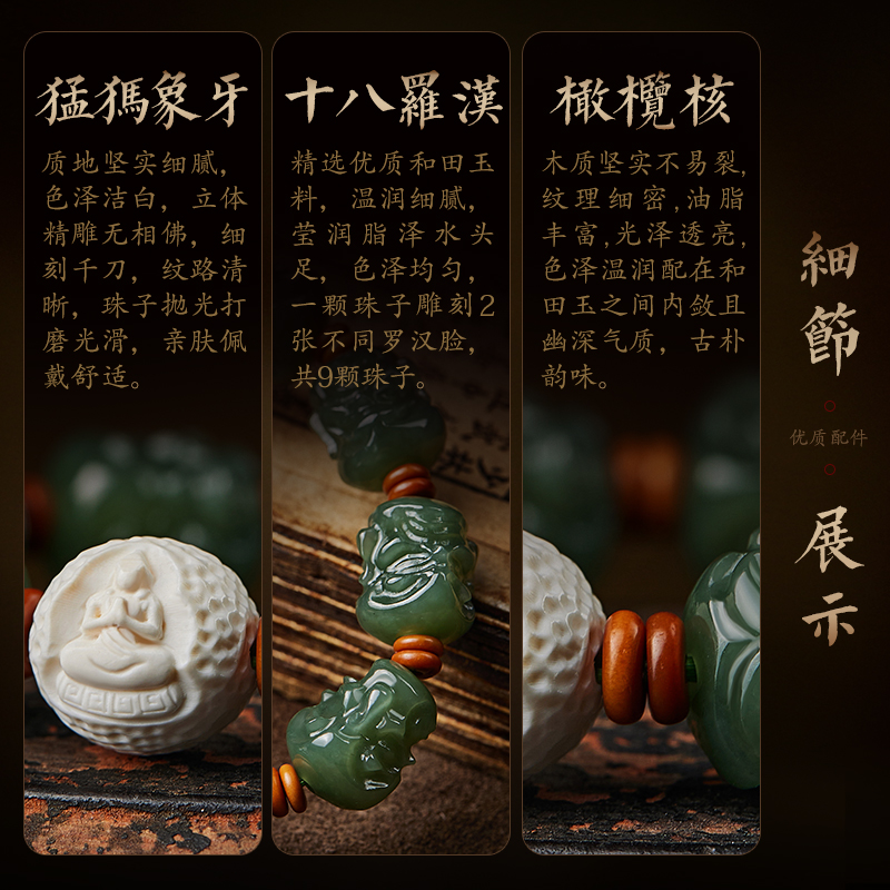 十八罗汉和田玉手串男鸭蛋青文玩佛珠猛犸象牙佛头转运珠手链官方