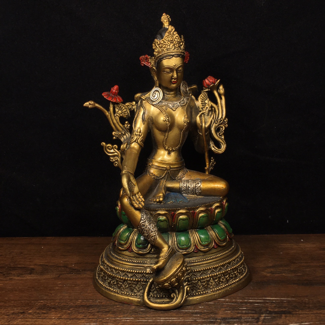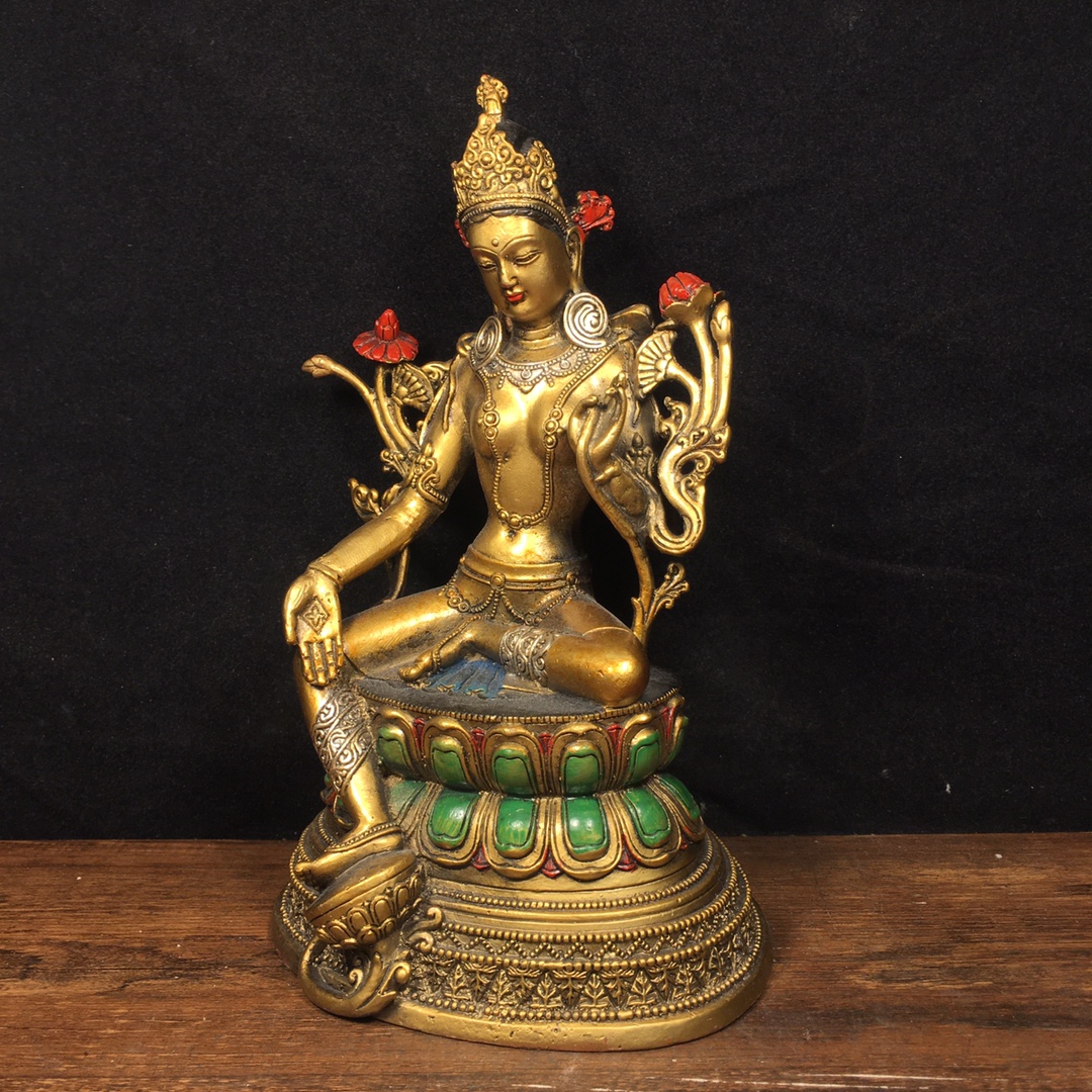绿度母纯铜彩绘藏佛佛像仿古铜器菩萨家居佛堂供佛装饰品桌面摆件