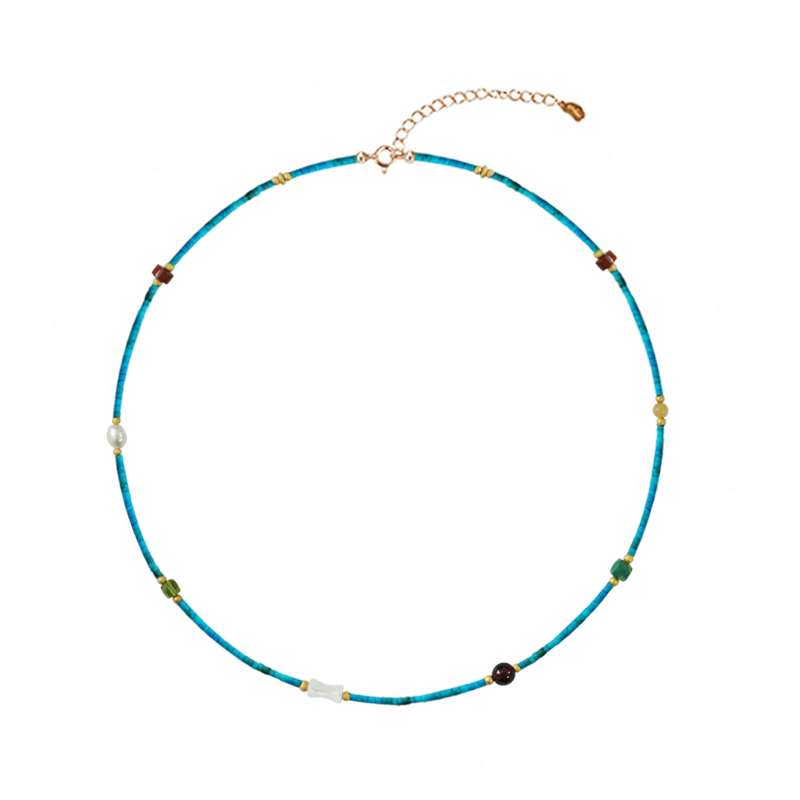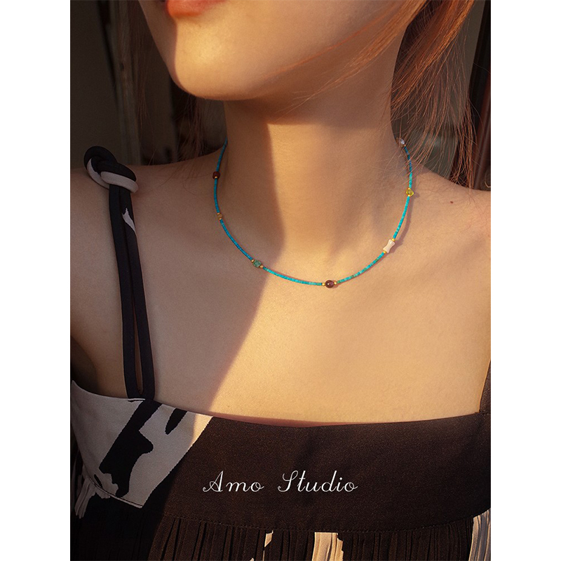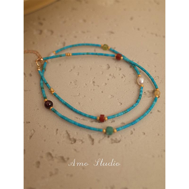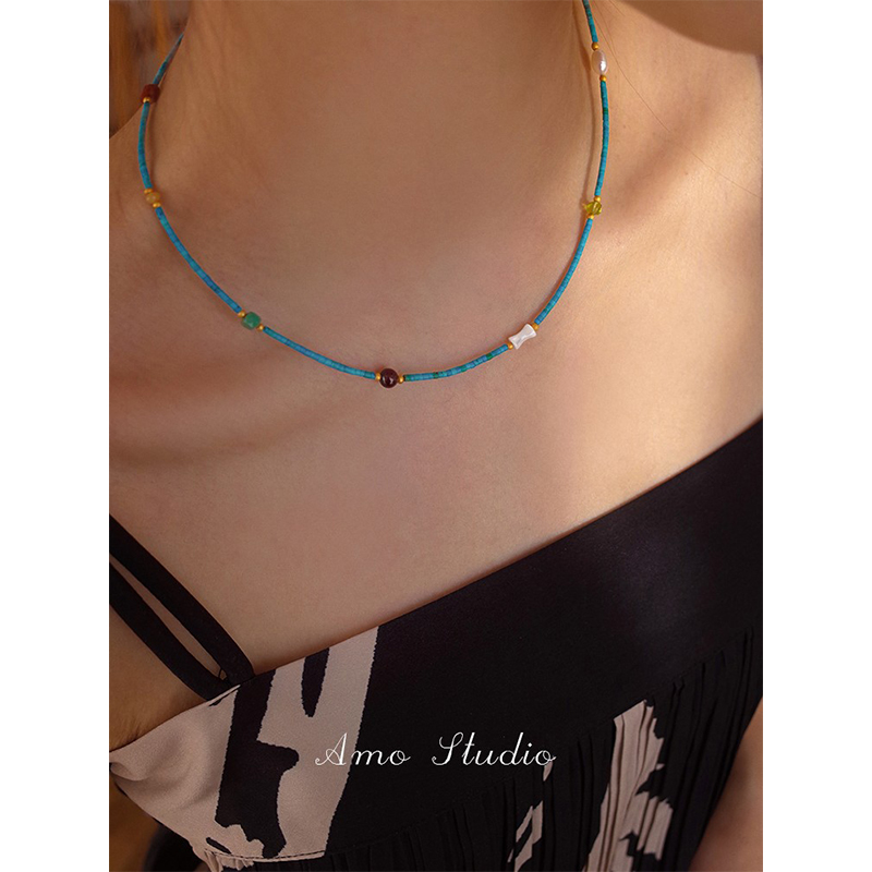 AMO翡翠湾天然绿松石珍珠项链女中式复古小众设计高级串珠锁骨链