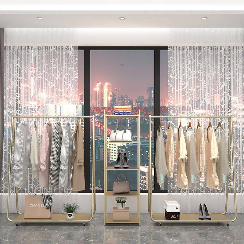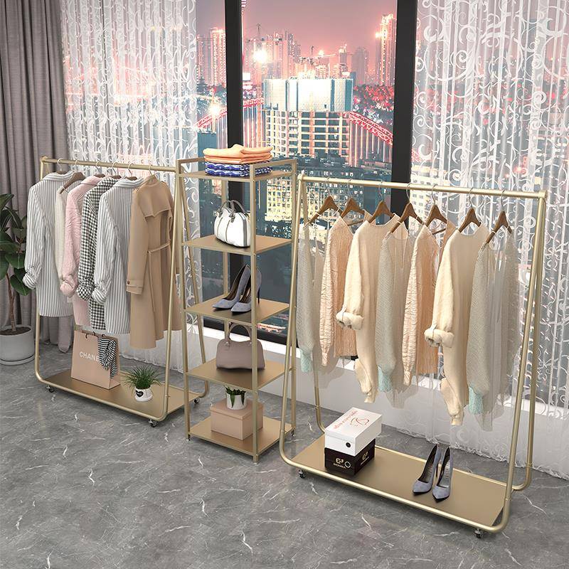 fc服装店包架展示架金色服装架女装店货架落地式简约衣帽衣架带轮