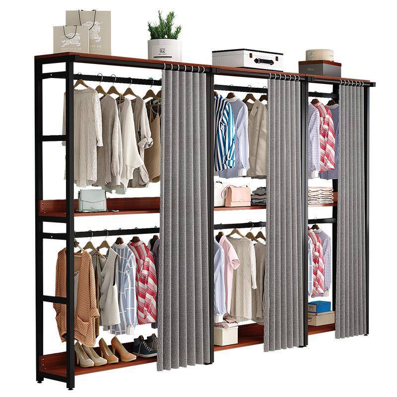 轻奢时尚衣帽间架子落地衣架双层家用卧室开放式带抽屉收纳衣柜