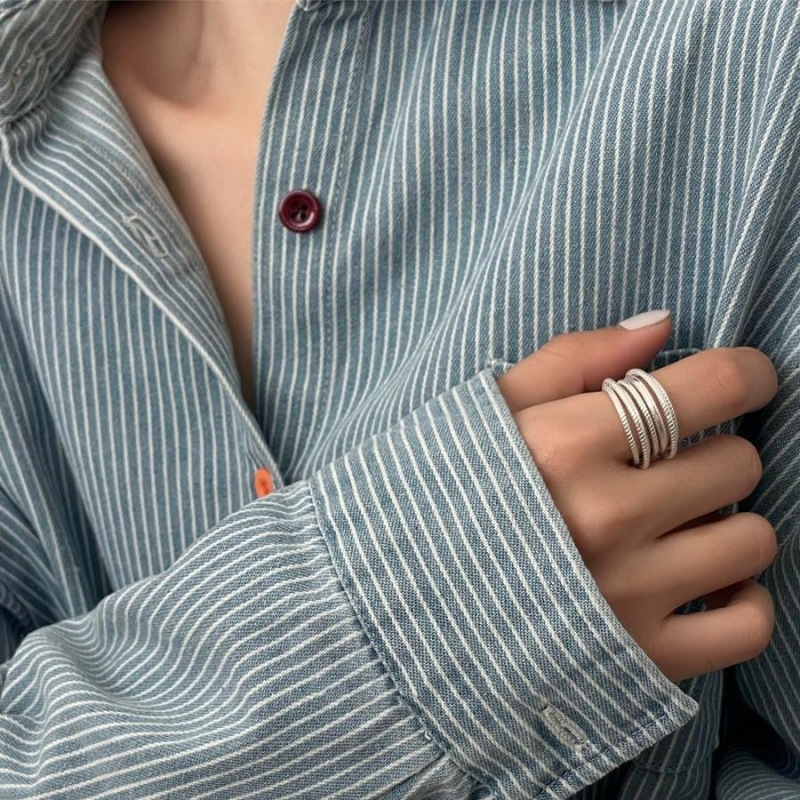 多层线条戒指女几何时尚螺旋麻花个性S925镀银开口指环甜酷食指戒