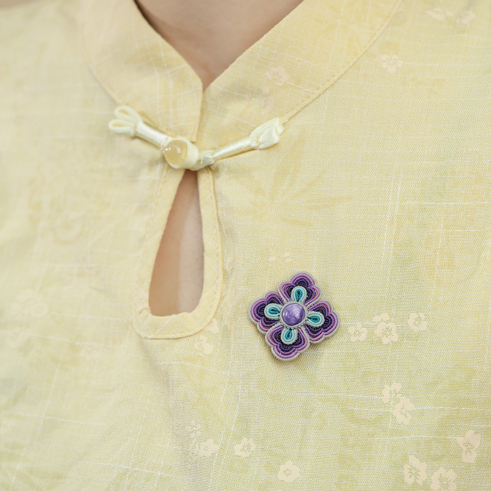栖石原创初级编绳教程团芳胸针饰品手工编绳首饰