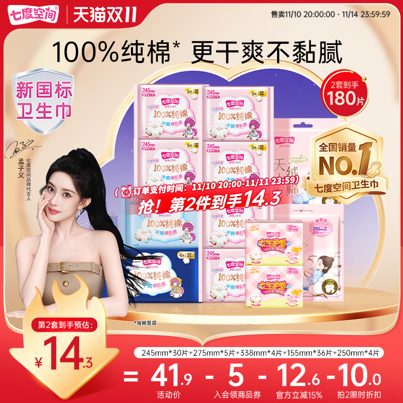 【新国标认证】七度空间少女纯棉超薄日用夜用组合姨妈巾卫生巾
