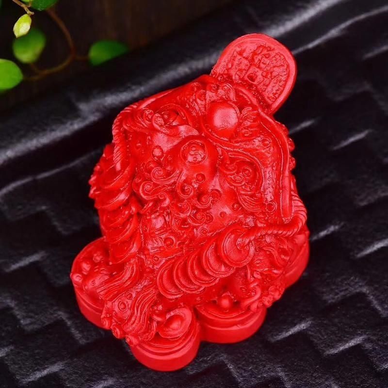 金蟾红色摆设龙龟摆件朱砂家居工艺品客厅玄关办公桌装饰国风桌面