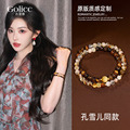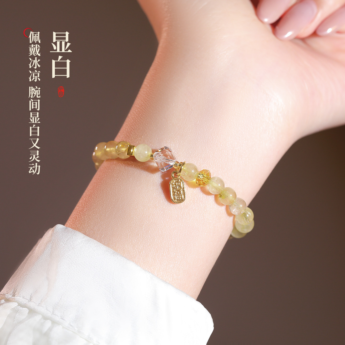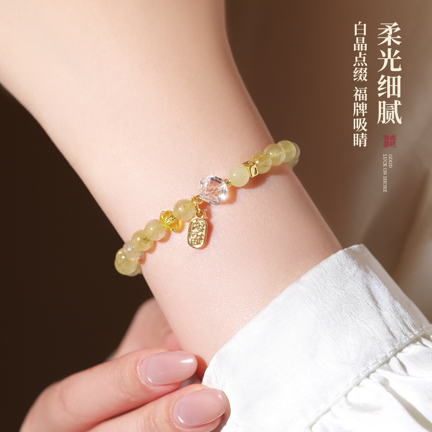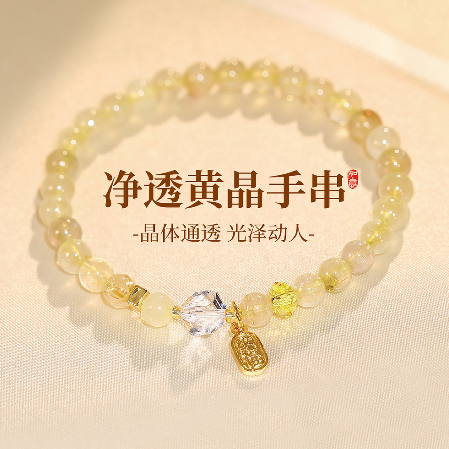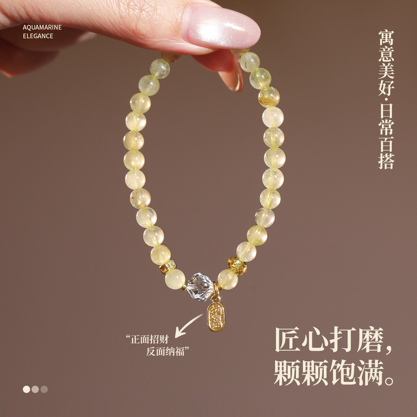 2026新款黄色水晶叠戴串珠福牌吊坠手链女款轻奢小众精致闺蜜手串