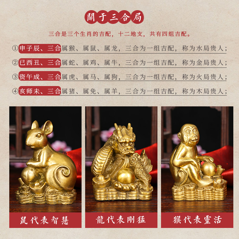 全铜鼠龙猴三合贵人招财转运摆件申子辰鼠形龙形猴形吉祥物工艺品
