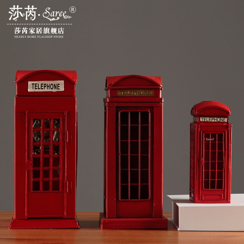 复古怀旧铁艺电话亭模型收纳存钱罐家居客厅酒柜电视柜装饰品摆件