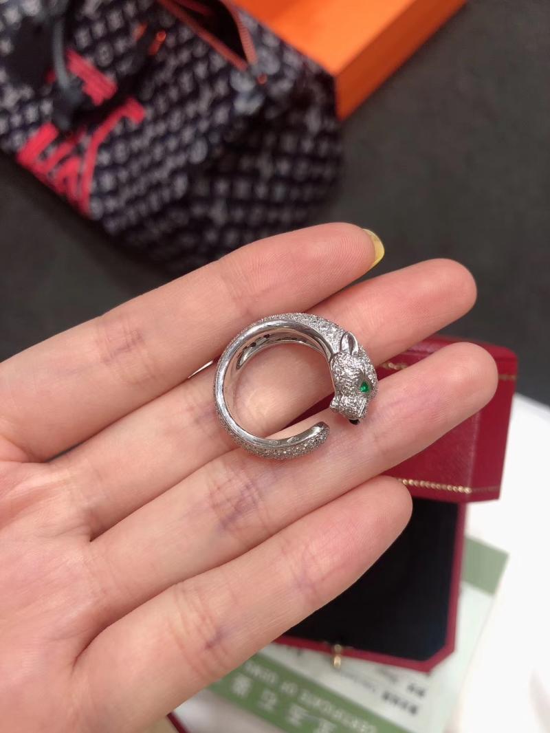 【99新】二手正品白金满钻豹头戒指男女通用53号二手奢侈品