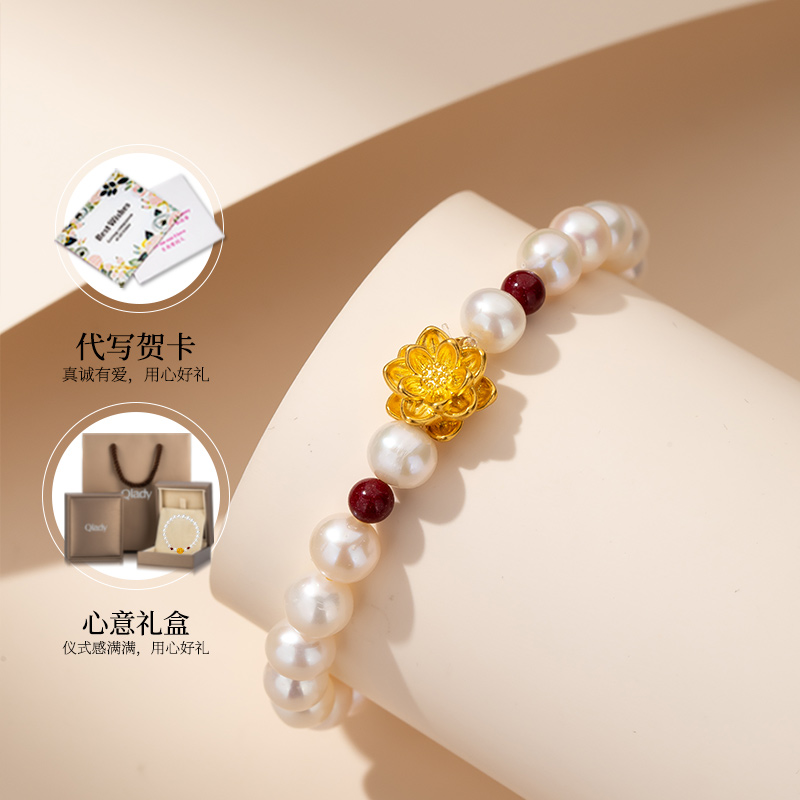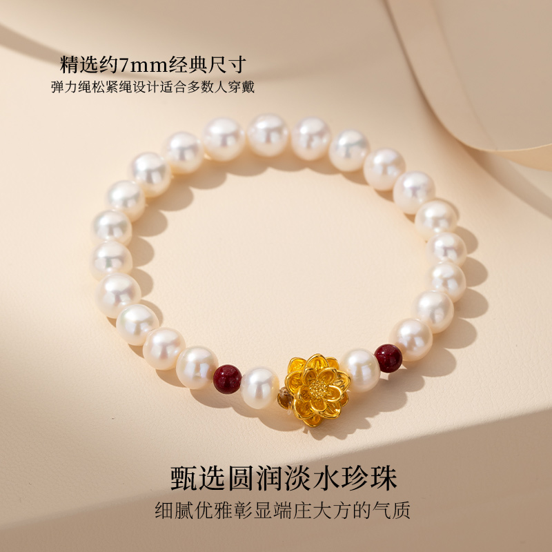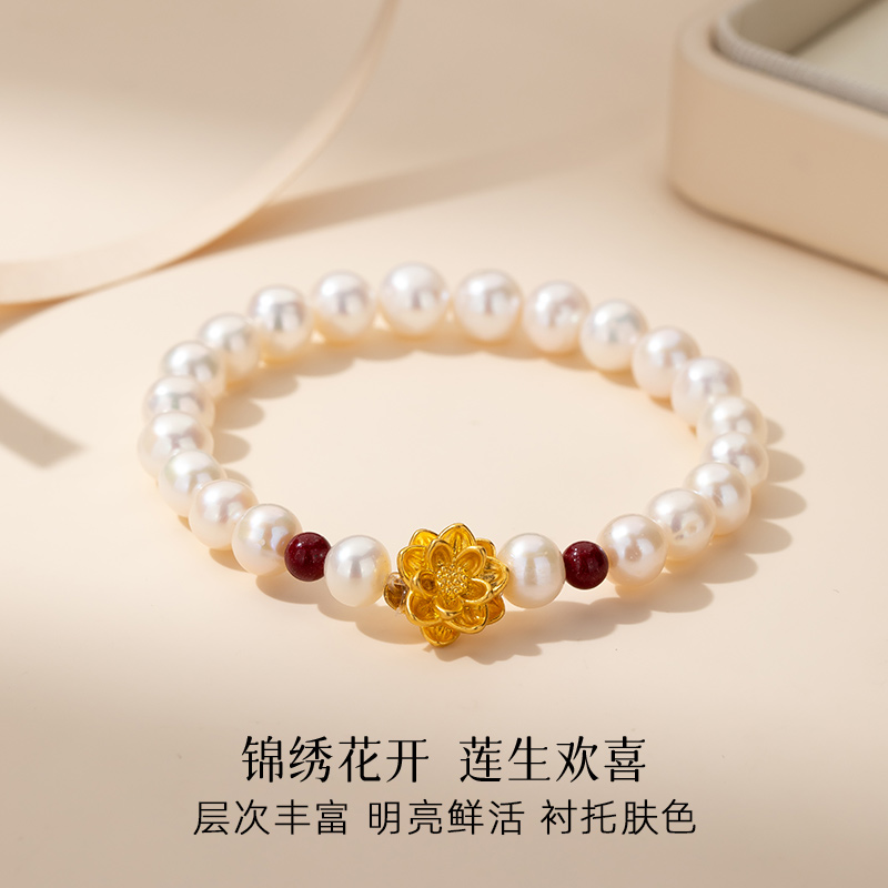 黄金莲花朱砂珍珠手链轻奢小众精致手串女款手饰母亲节礼物送妈妈