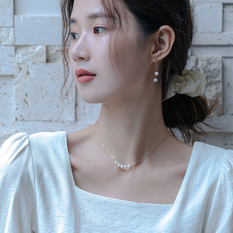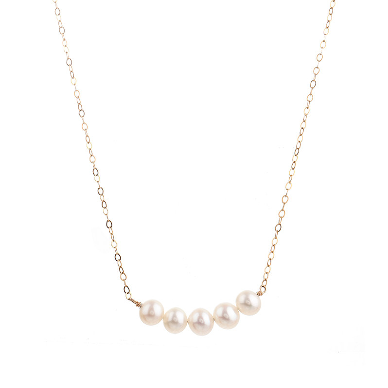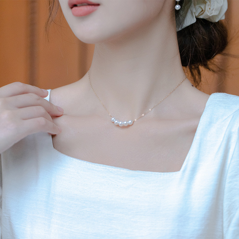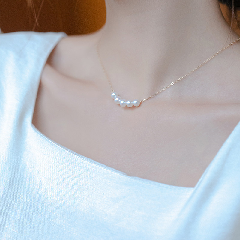 14K包金微笑项链女锁骨链小粒不褪色网红笑脸天然淡水珍珠脖颈链