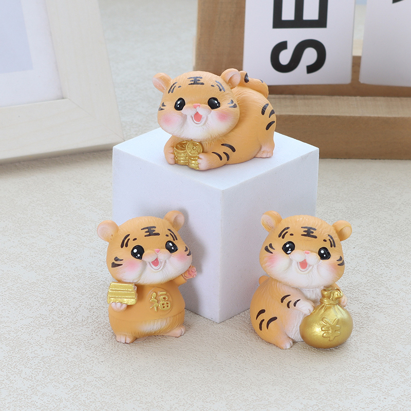可爱老虎小摆件生肖虎元宝招财卡通公仔车载内饰品吉祥物生日礼物