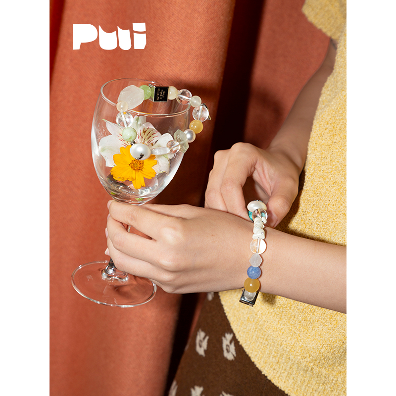 Puui原创新款天然水晶猫眼石时尚女款精致百搭手链送人生日礼物