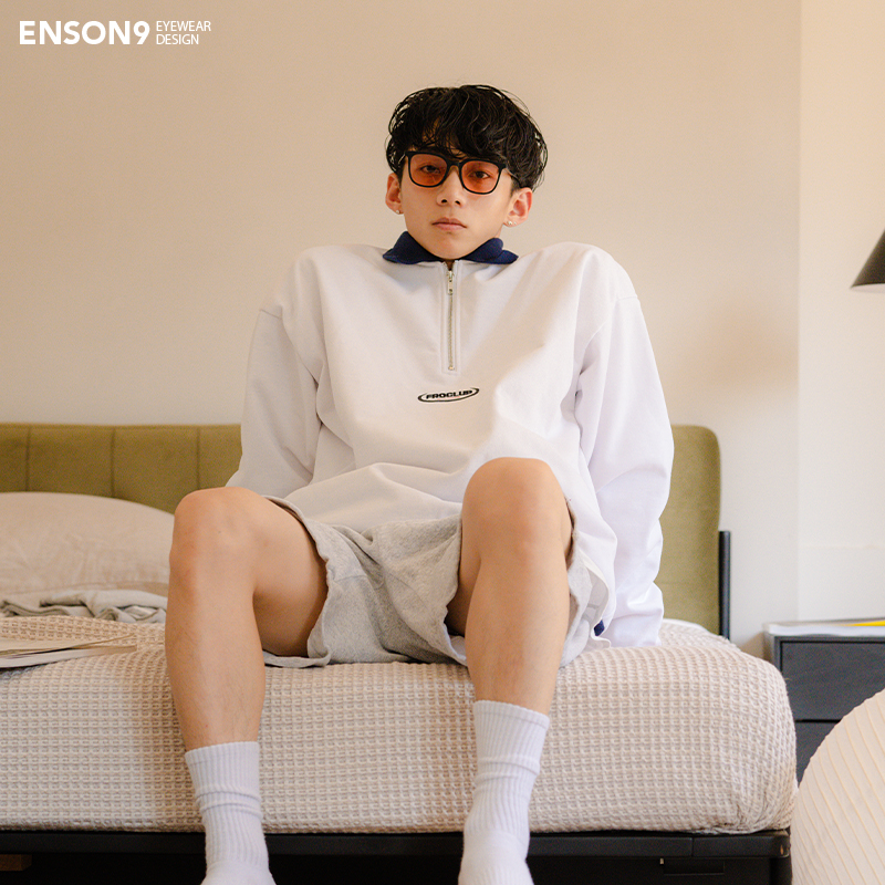 enson9复古半透明浅色太阳镜潮男女 板材方框浅红色素颜显白眼镜
